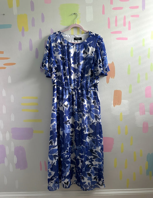 Description : Kasper Blue and White Floral Midi Dress - Size Large Step out in...