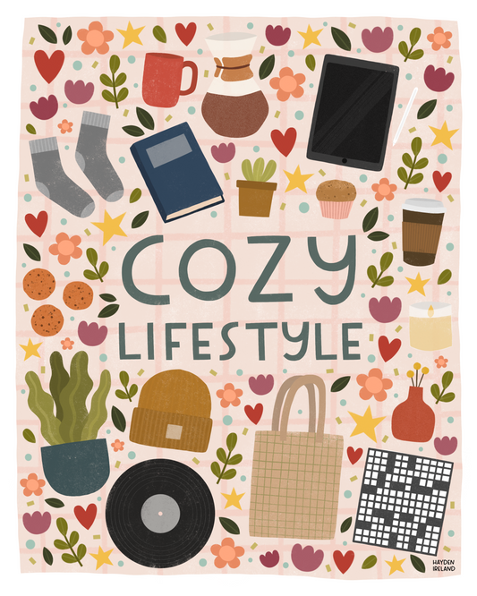 Description : Cozy Lifestyle Original illustration by Hayden Ireland 5x7 Art Print Item Number :...