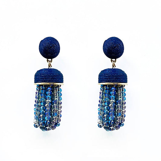 Gold Blue Oval Multi Crystals Artisan Earring