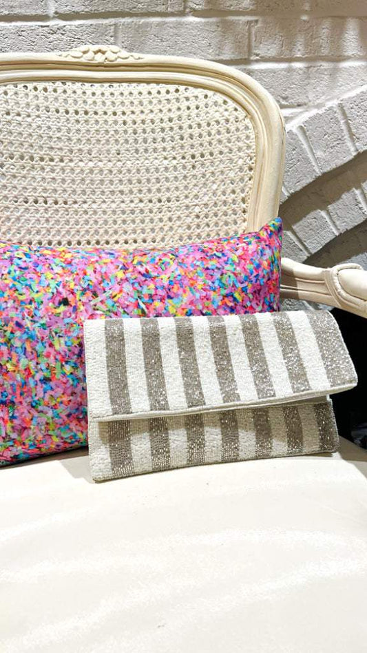 Silver Stripe Beaded Clutch