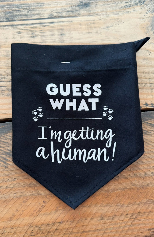 Description : Dog Bandana - Baby Announcement " Guess What - I'm getting a human"...