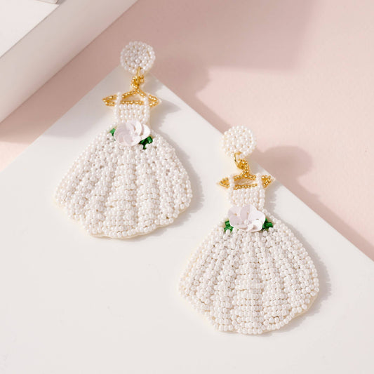 Wedding Dress Seed Beaded Earrings