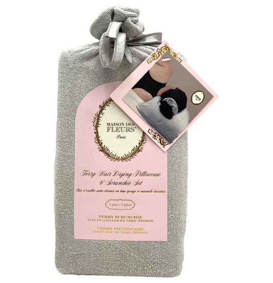 Description : Maison Des Fleurs Terry Hair Drying Pillowcase & Scrunchie Set Soft hair, slower...