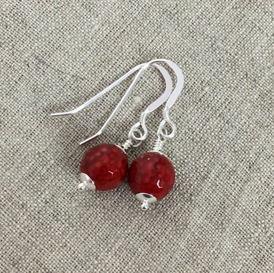 Description : Faceted Bamboo coral earrings with sterling silver accents, dangling from Sterling Silver french...