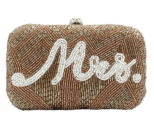 Mrs Script Beaded Snap Clutch Bag with Crossbody Chain