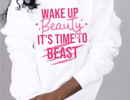 Description : Wake Up Beauty It's Time To Beast Sweat Shirt Item Number : P1474...