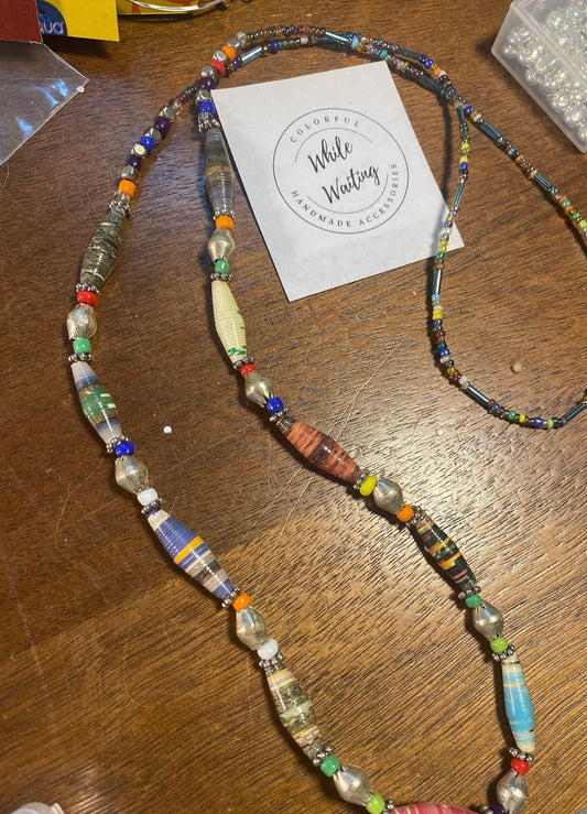 Description : These paper bead necklaces have all the colors!! handmade Haitian paperbeads are paired...