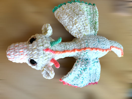 Description : This hand crocheted dragon is approximately 22 inches long, and 17.5 inches wide...