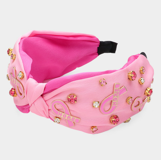 Description : Enamel Pink Ribbon Stone Cluster Embellished Knot Headband Elevate your style while supporting...