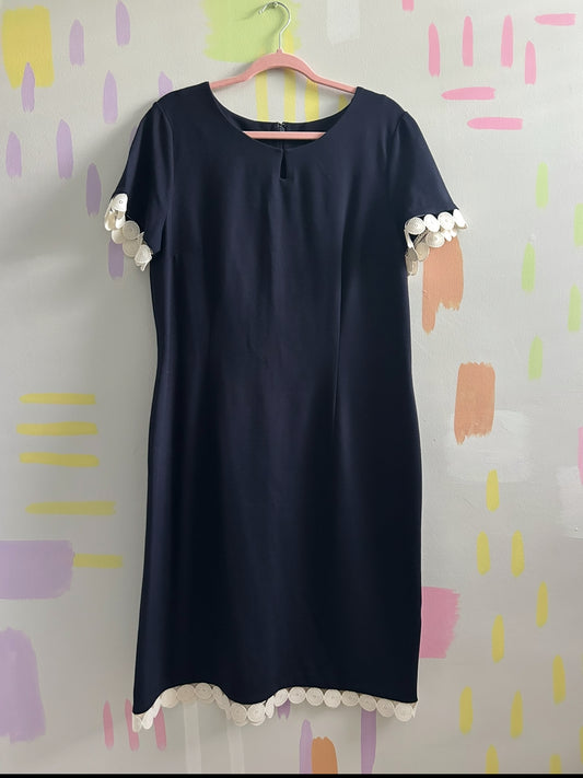 Talbots Navy Blue Dress with Cream Scalloped Trim - Size 14