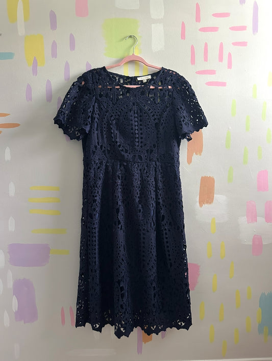Eri + Ali Navy Blue Crocheted Lace Dress - Size X-Large