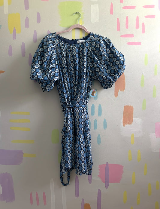 Velvet by Graham & Spencer Blue and White Geometric Print Dress - Size Medium