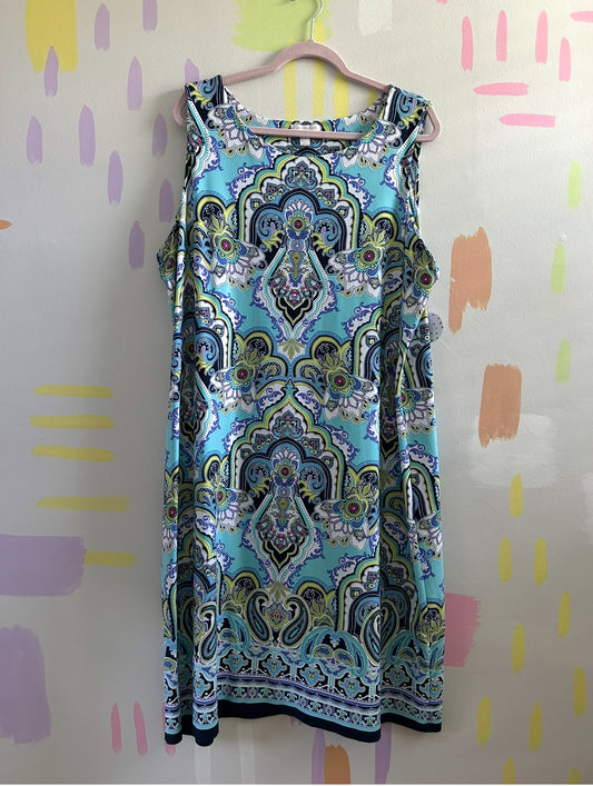 Charter Club Aqua Multi-Print Sleeveless Shift Dress - Size 3X