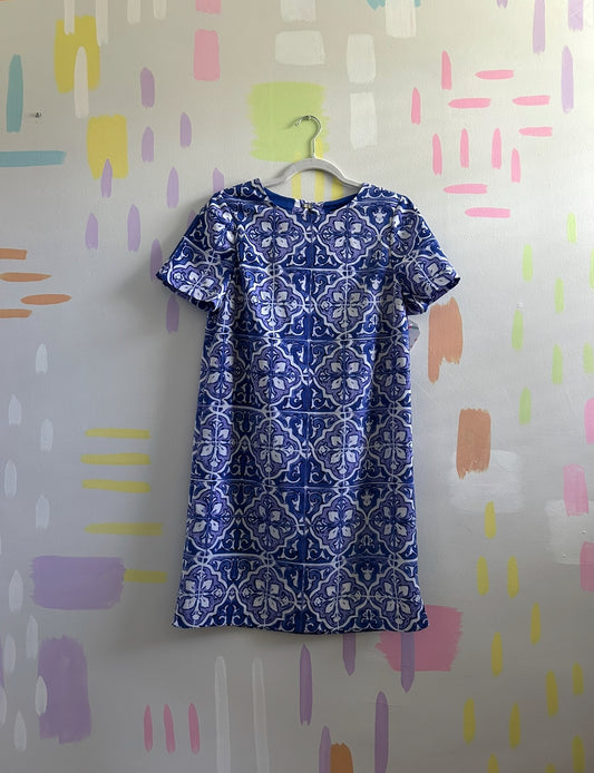 Description : The Limited Blue and White Tile Print Shift Dress - Size Small Embrace...
