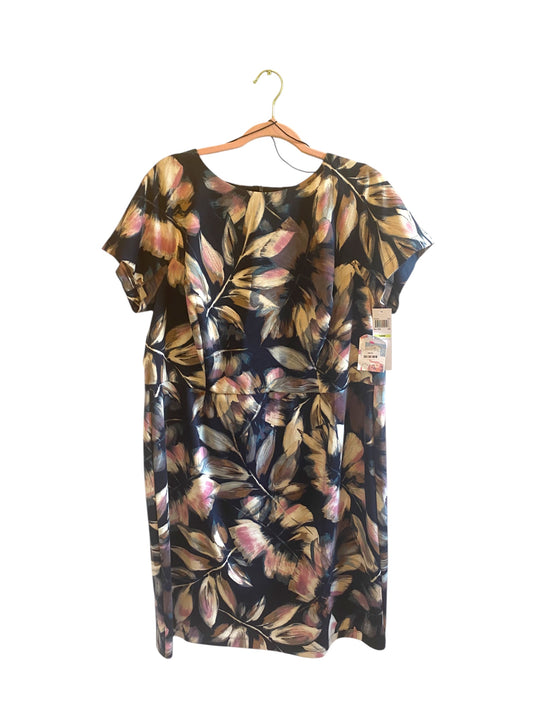 London Times Navy Pastel Leaf Print Dress- Size-18