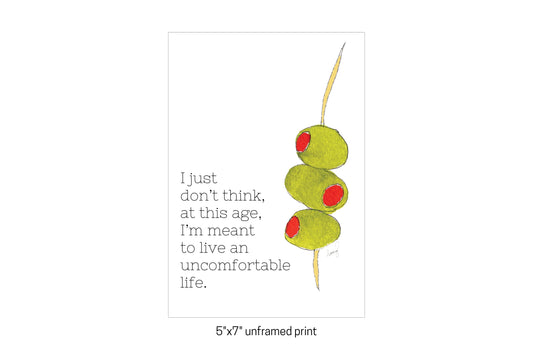 Description : Unframed 5”x7” art print on textured 110# paper. Print of martini olives paired...