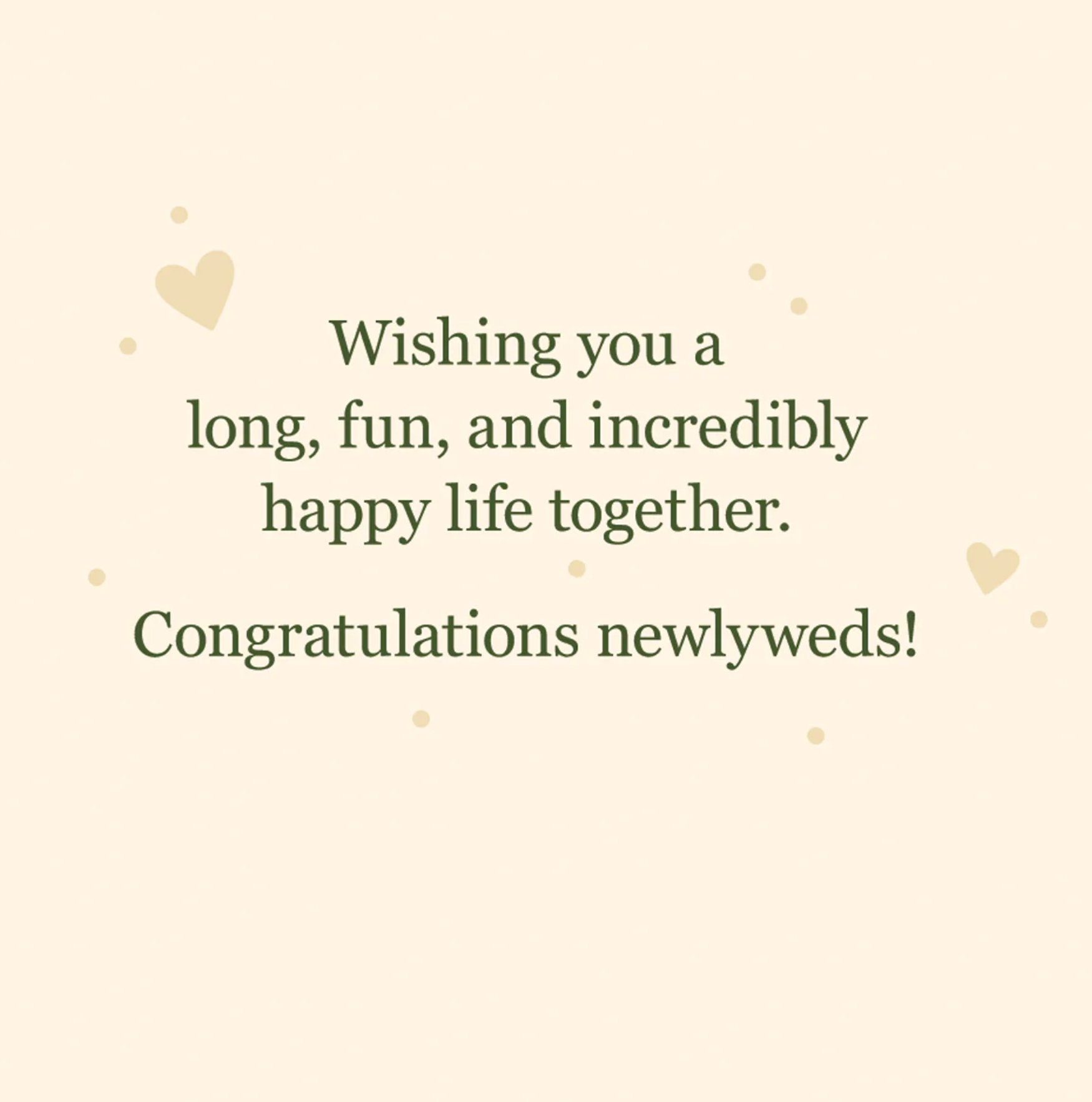 Description : An amazing card that celebrates love, and the incredible union of a couple you care about! Our Handmade Wedding Card is the perfect addition to the day they'll never forget! Features: Dimensions: 5"x 7" Wedding Outside Greeting: HAPPIEST. DAY. EVER. Inside Greeting: Wishing you a long, fun, and incredibly happy life together. Congratulations newlyweds! Glitter, Gold Foil, Jewels Includes single card & envelopes