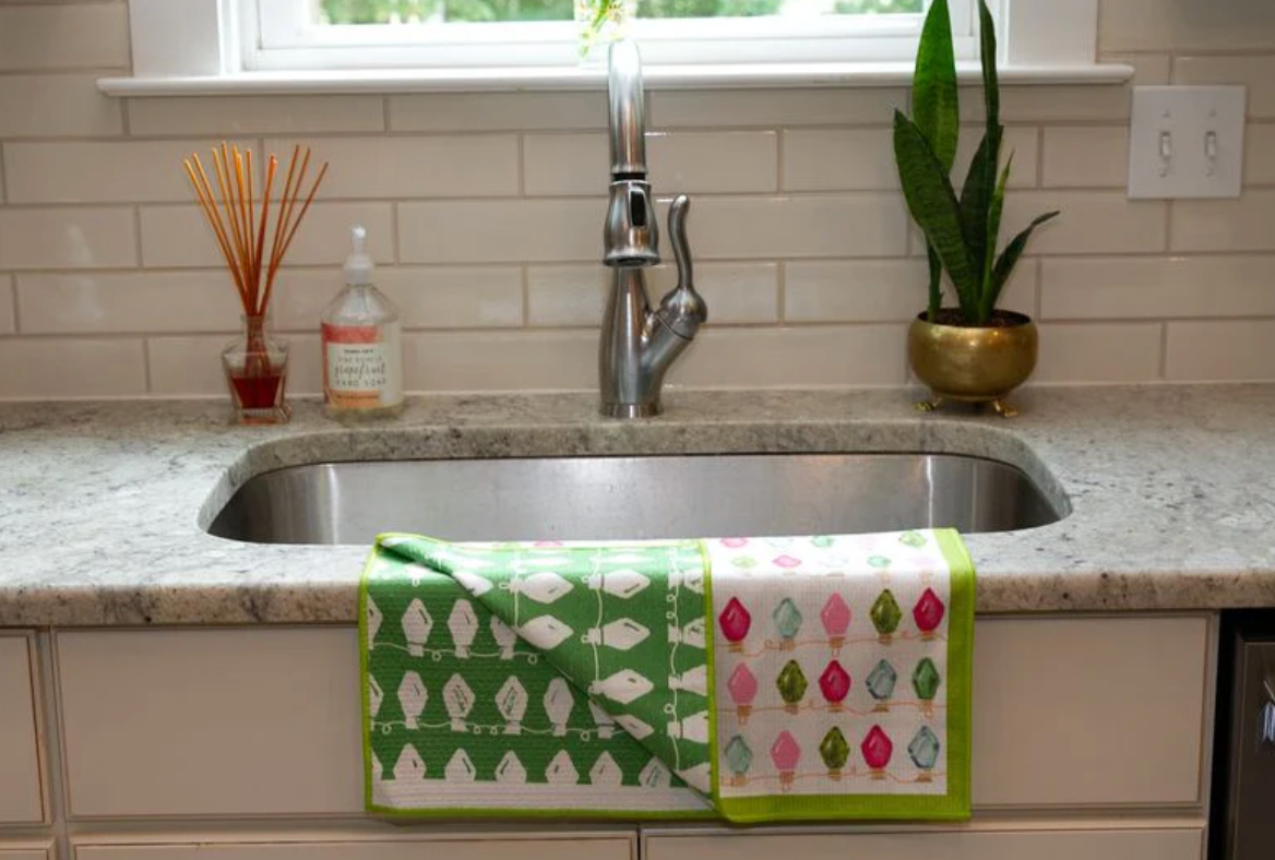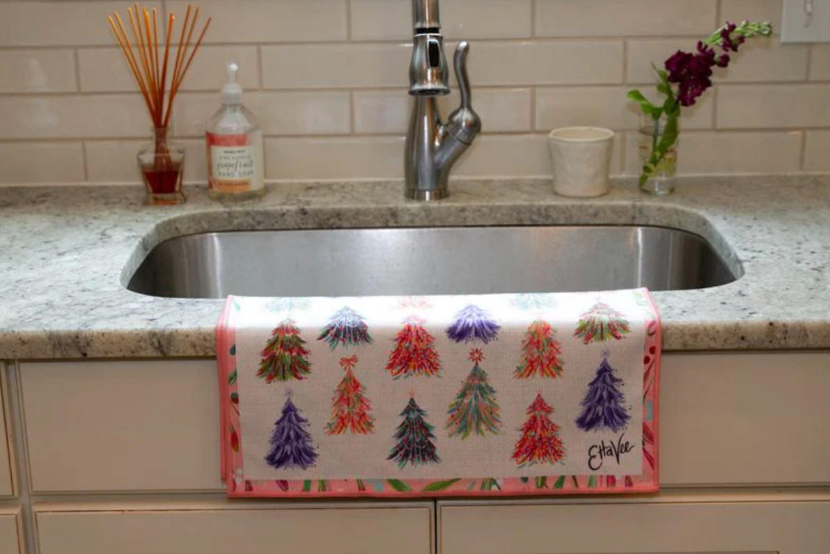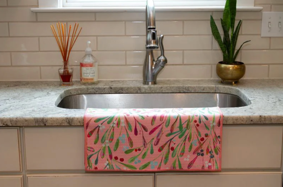 Description : We love a good tea towel. Especially ones that are both absorbent and beautiful. Use in your kitchen, hang in your powder room, wrap around a bottle of wine and welcome this original art into your home. These towels are SUPER ABSORBENT (makes drying those dishes or hands fast), FAST DRYING (say goodbye to smelly towels) and feature ORIGINAL ART by our team of female artists - who each receive a % of sales with each purchase. ORIGINAL ART Created By partners with female artists, turning their original art into goods to wear, use, give and love. Wave weave fabric Double-sided art 18” x 27” Machine wash cold, do not bleach Packaged ready to give with artist story included.