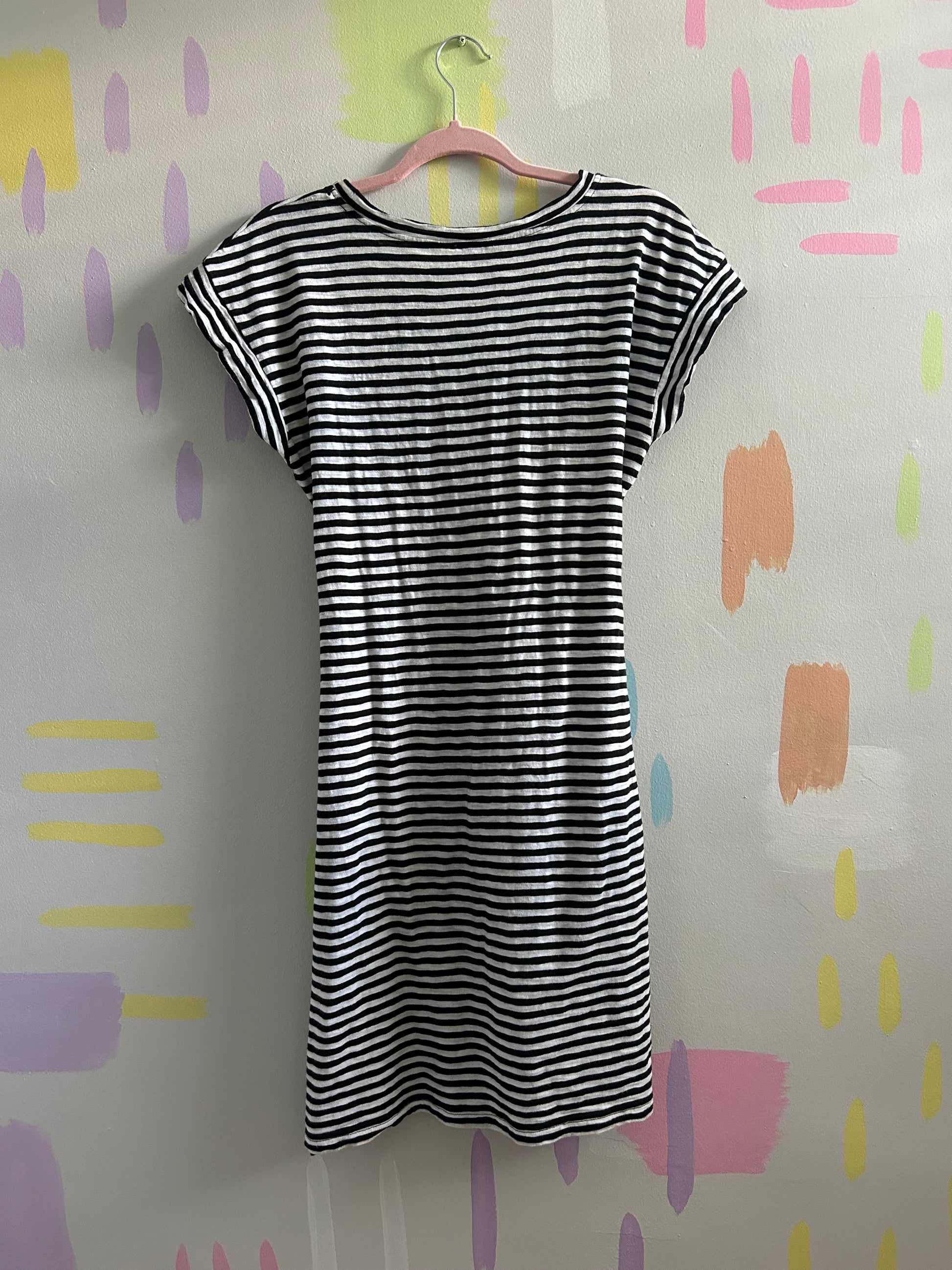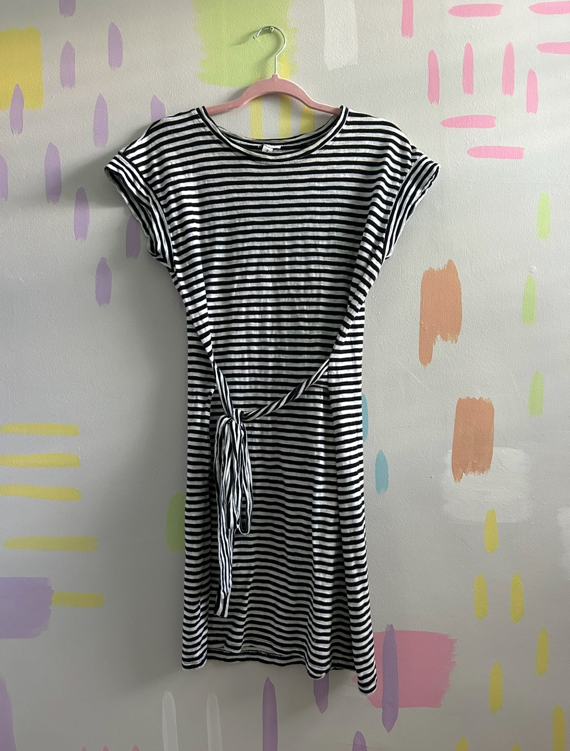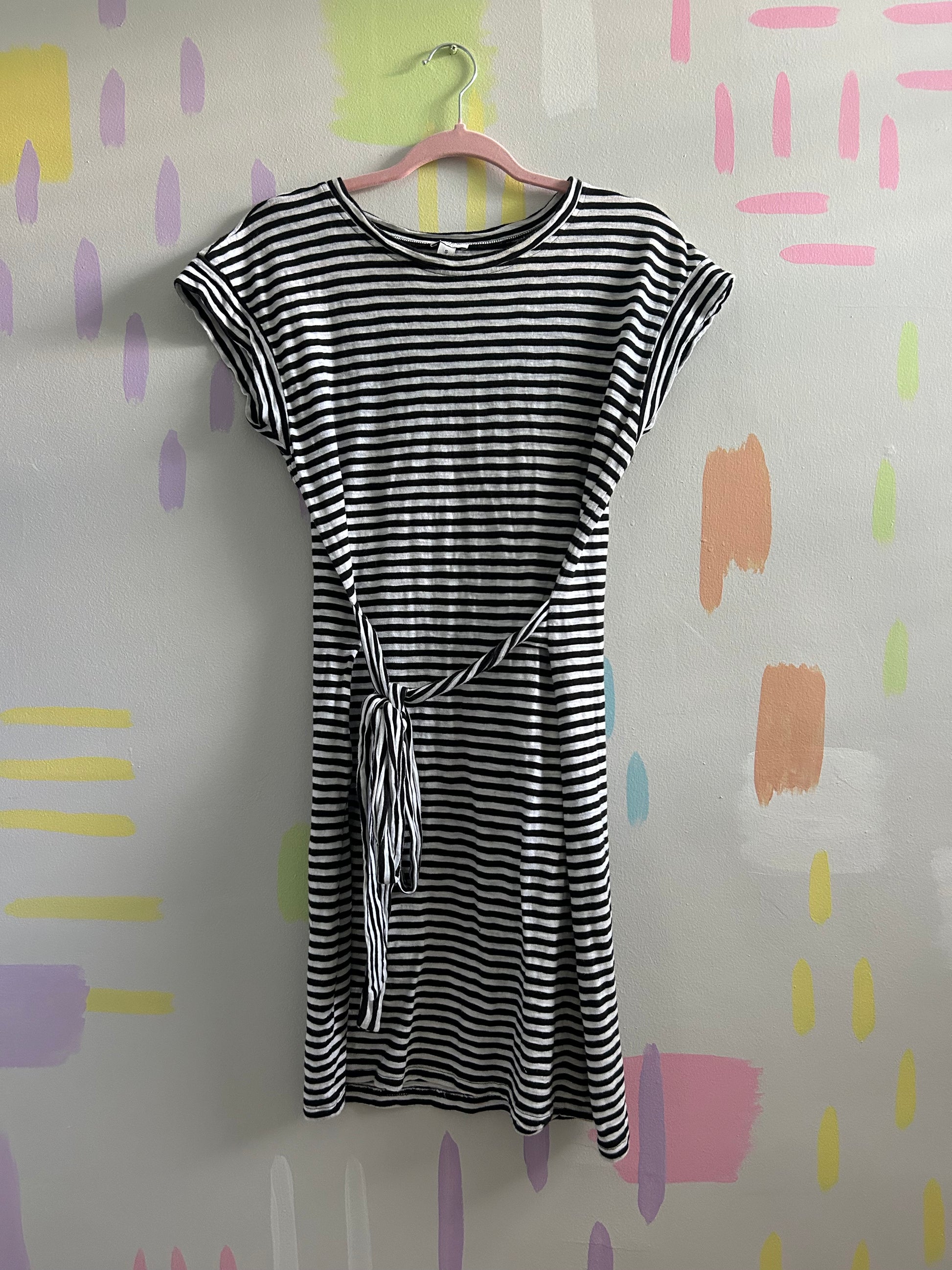 J.Crew Black and White Striped T-Shirt Dress with Tie-Waist - Size Small