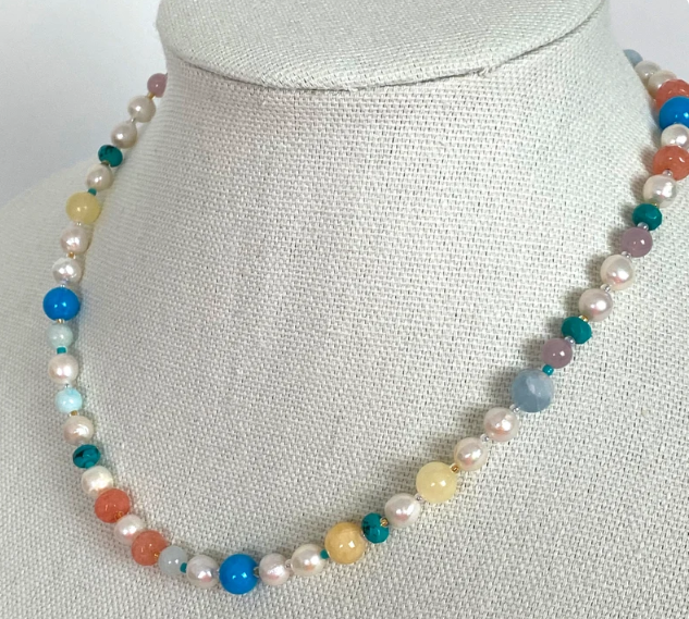 Mixed Gemstones and Pearl Necklace