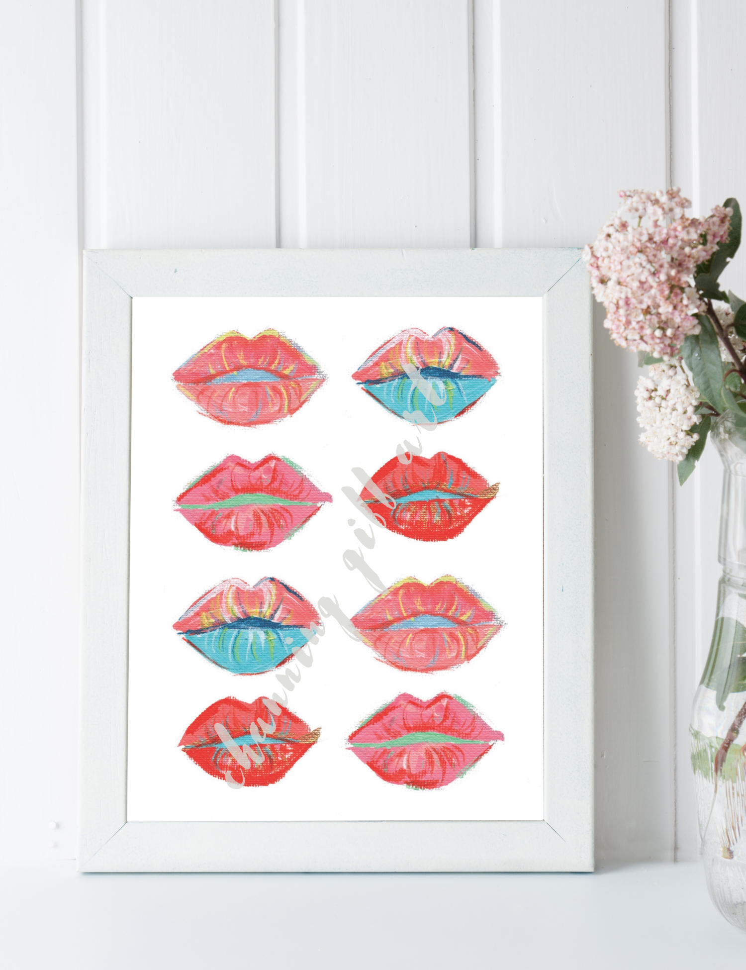 Description : 8”x10” art print on textured 110# paper. Hand-signed. UNFRAMED. (Frame shown for display purposes only) Print of original painting of Pop Art Lips by Channing. Painted, designed and printed locally in Richmond, VA. Copyright © Channing Gibb Art All artwork and images on this site are © Channing Gibb. Prints may not be resold. Images may not be used, downloaded, sold, redistributed, altered, or printed. Personal or commercial use of the artwork without explicit written consent from the artist, Channing Gibb, is strictly prohibited and punishable by U.S. and international copyright laws.