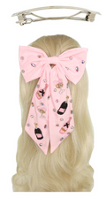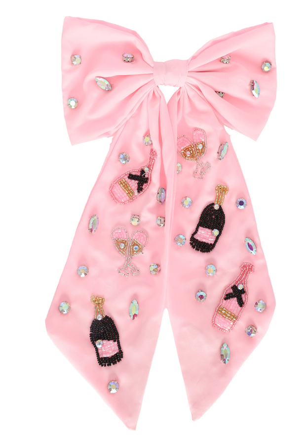 Champagne Toast Embroidered Bow Barrette Hair Clip
