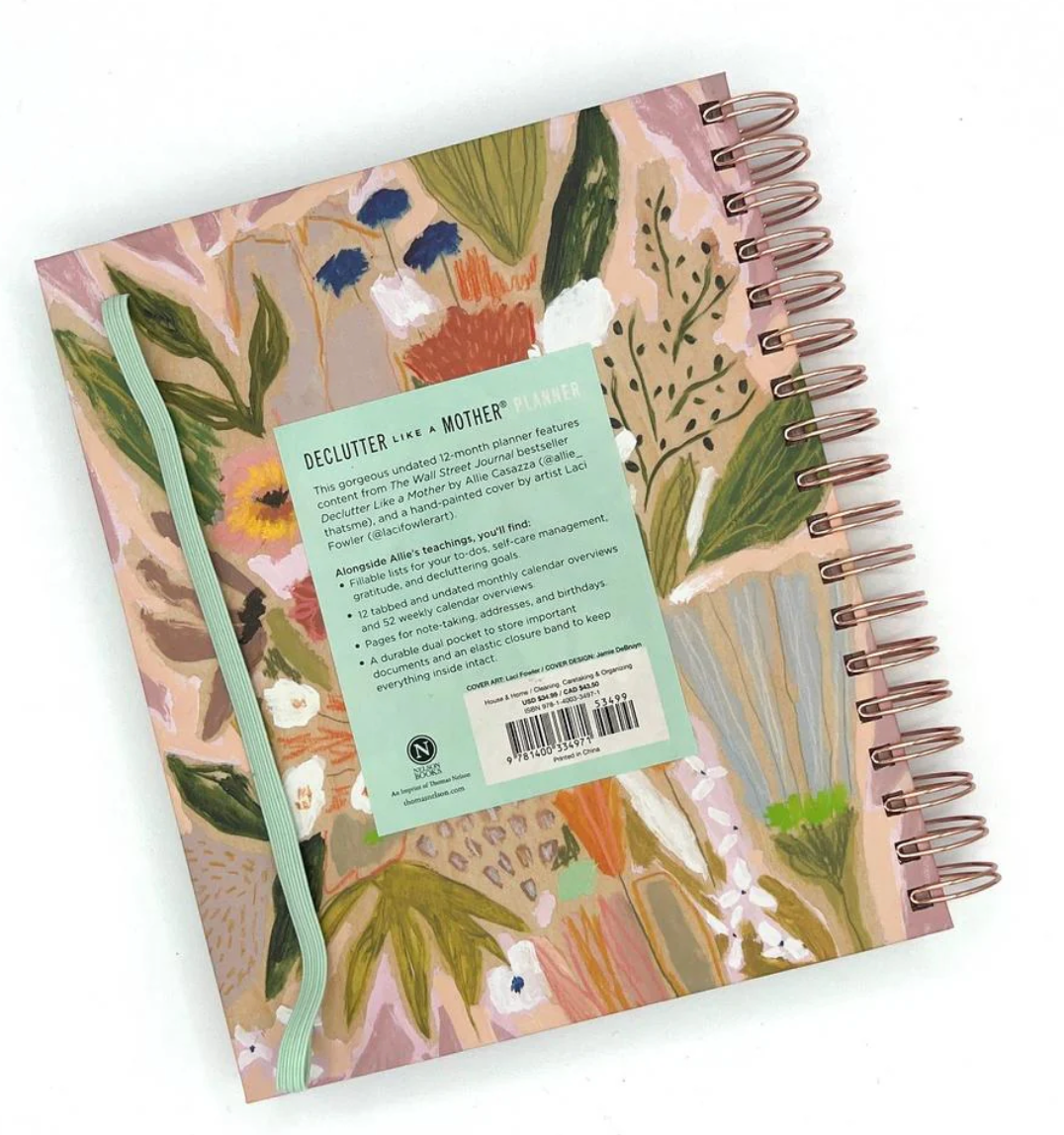 Description : Declutter Like a Mother Planner A guilt-free, no-stress way to clear your space and calm your life by Allie Casazza You do not need a perfect home. You need a home that works for you. Inspired by the Wall Street Journal bestseller Declutter Like a Mother, this undated planner gives you a simple, compassionate system to let go of what does not matter and make space for what does. Inside, you will find encouraging affirmations, flexible planning pages, space for self-care and gratitude, and clear prompts that turn decluttering into a doable, judgment-free habit. With 12 monthly overviews, 52 weekly spreads, and room for notes, addresses, and important dates, it meets you exactly where you are. Finished with a hand-painted cover by Laci Fowler, a lay-flat wire-o spine, a durable pocket, and an elastic closure, this planner is designed to be used, loved, and lived in. Less clutter. More peace. A home that finally feels like yours.