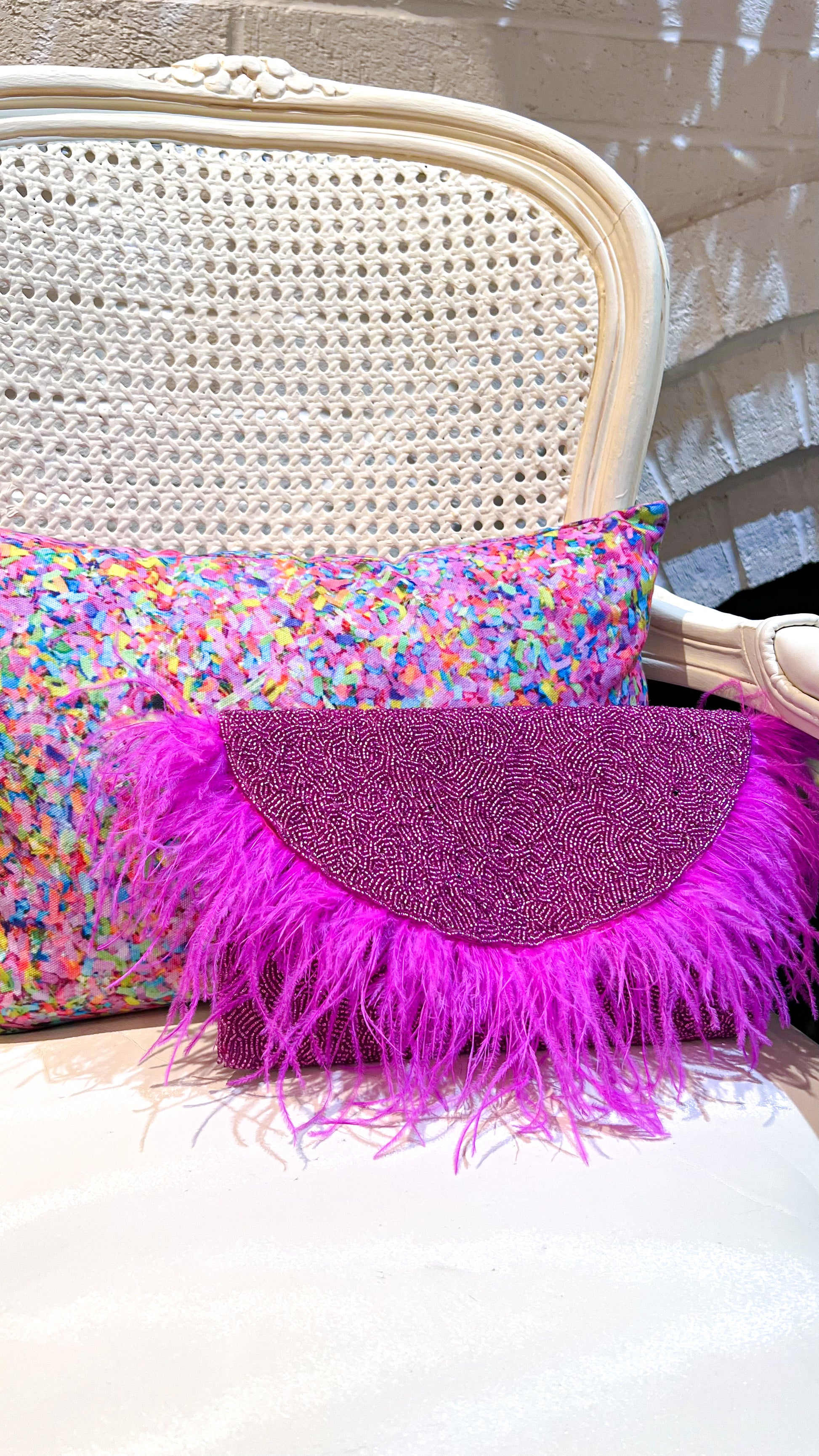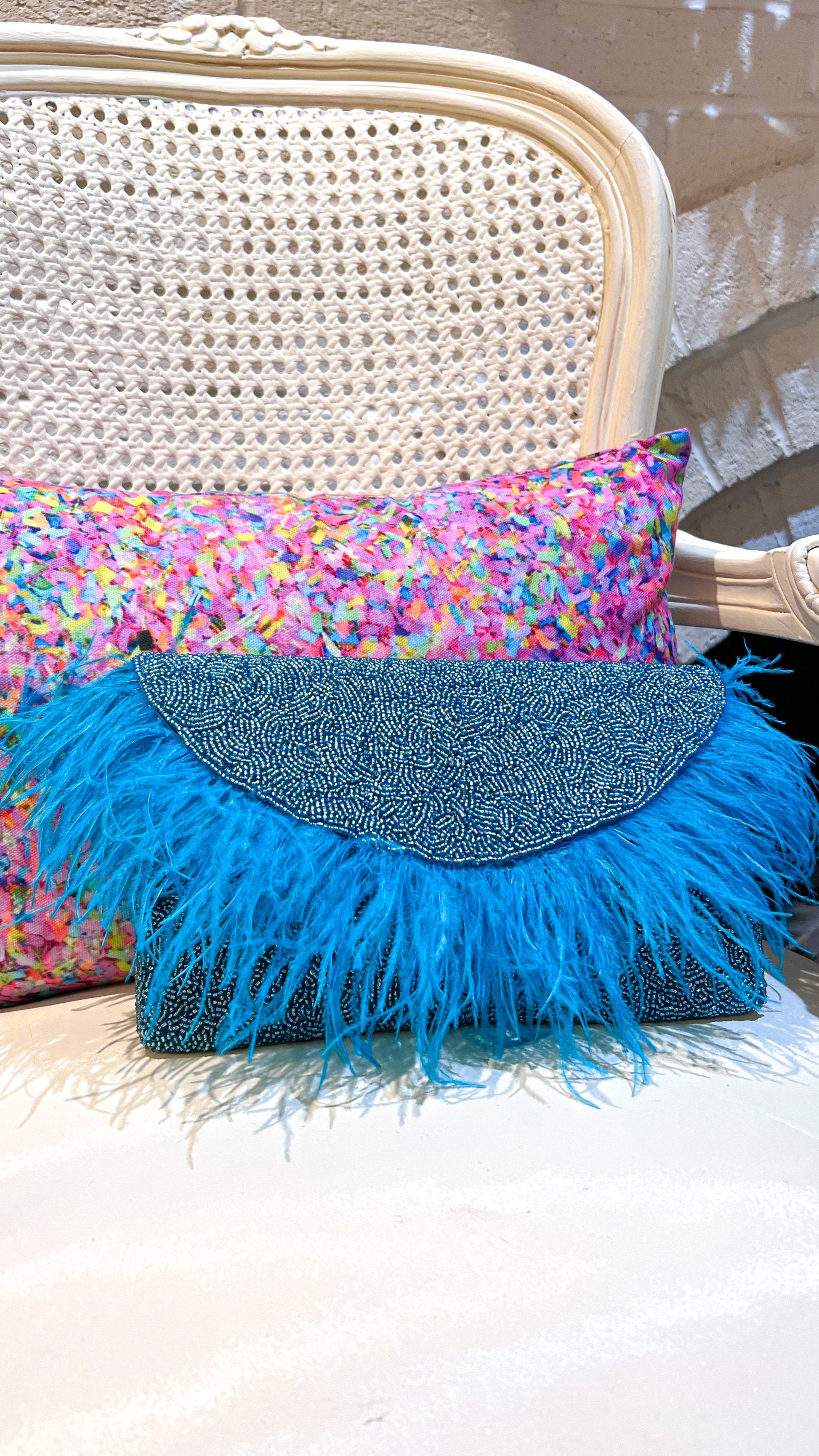 Glam up your next party with the GLAM FEATHER SEED BEAD BAG! Whether you're flaunting a statement-making look or taking it easy with glam, this bag's combo of feathers and beads will have you shining like a diamond. It's time to add some fabulousness to your night (and day!) out.