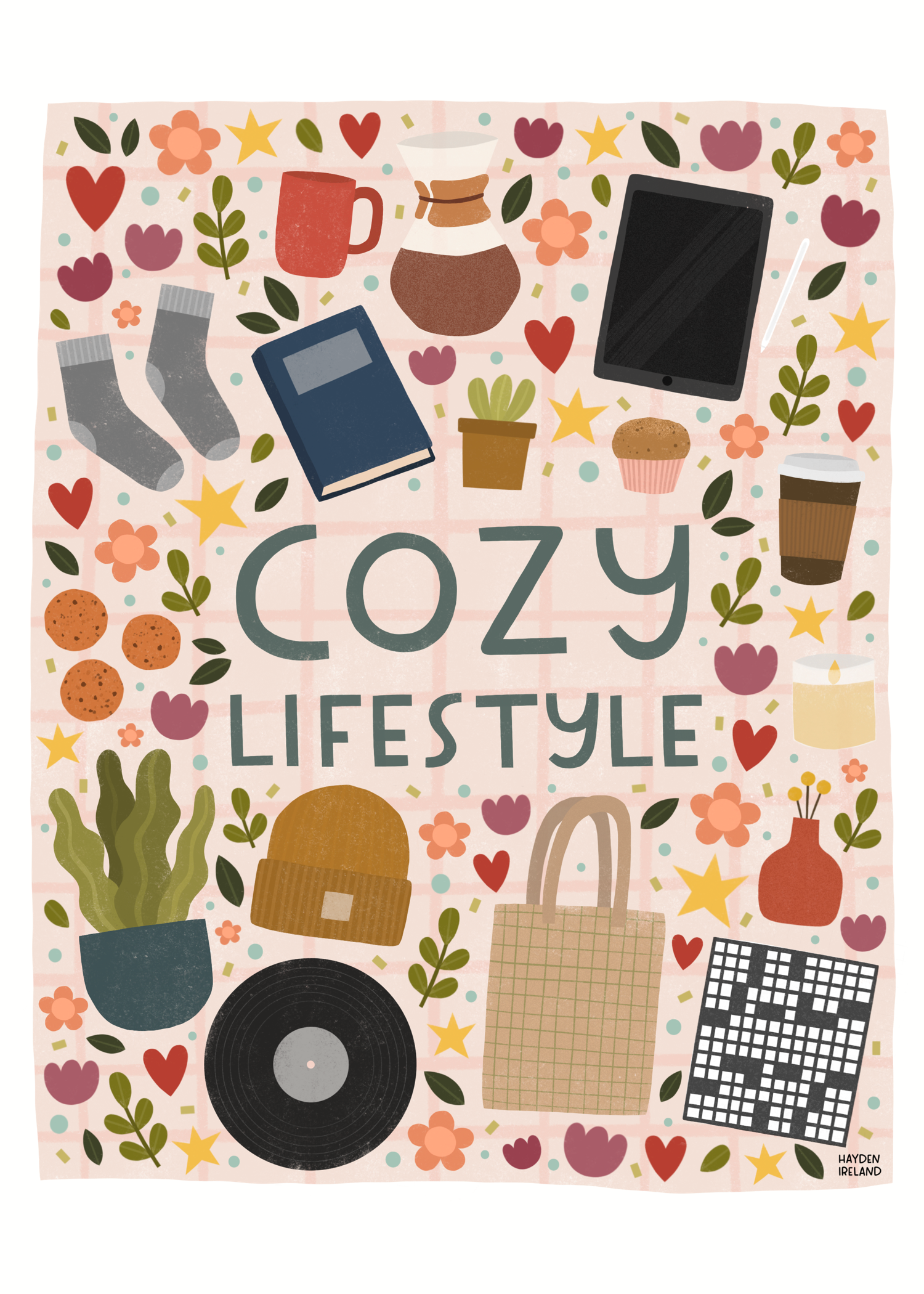 Description : Cozy Lifestyle Original illustration by Hayden Ireland 5x7 Art Print