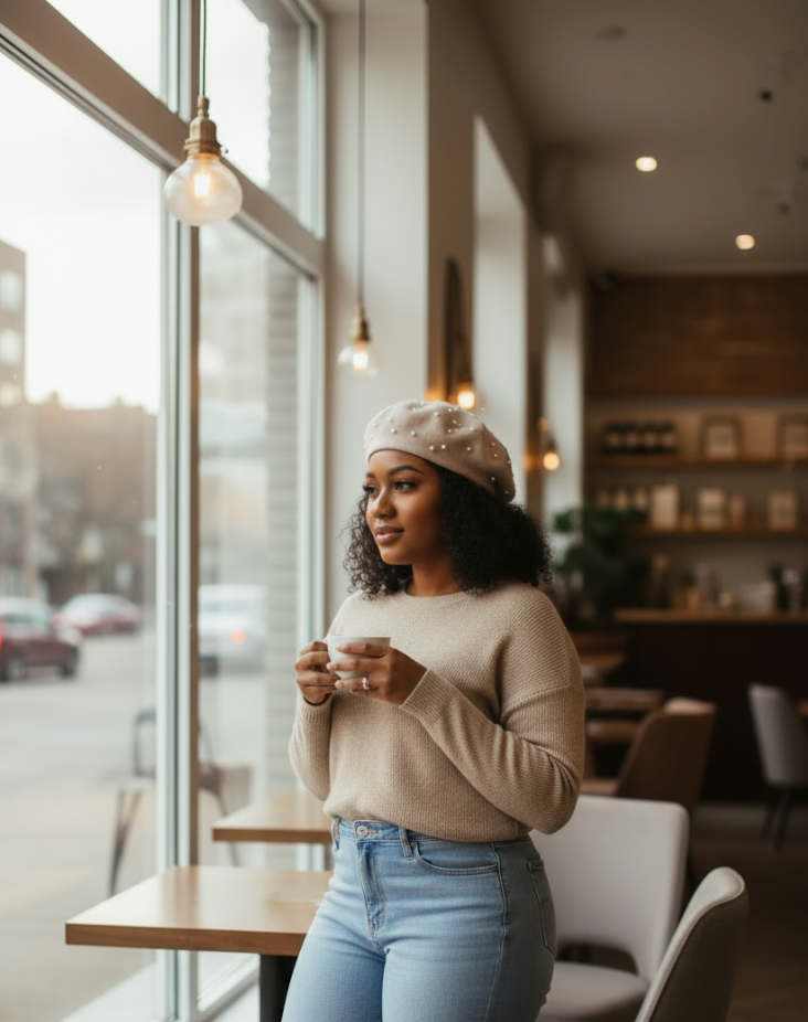 Description : Parisian Wool Beret With Pearl Embellishments Bring a touch of effortless Parisian elegance to your wardrobe with this Wool Beret With Pearl Embellishments. Inspired by classic French street style, this soft wool beret is adorned with delicate pearls that add just the right amount of feminine charm and timeless sophistication. It sits comfortably and securely, giving you that effortlessly chic silhouette whether you dress it up or pair it with a cozy sweater. Perfect for fall, winter, and holiday outfits, this pearl embellished beret makes a beautiful accessory for photo shoots, city strolls, gifting, or elevating your everyday style. Lightweight yet warm, it is the ultimate blend of classic fashion and modern coquette flair. A must have accessory for anyone who loves polished, romantic, Paris inspired fashion.