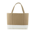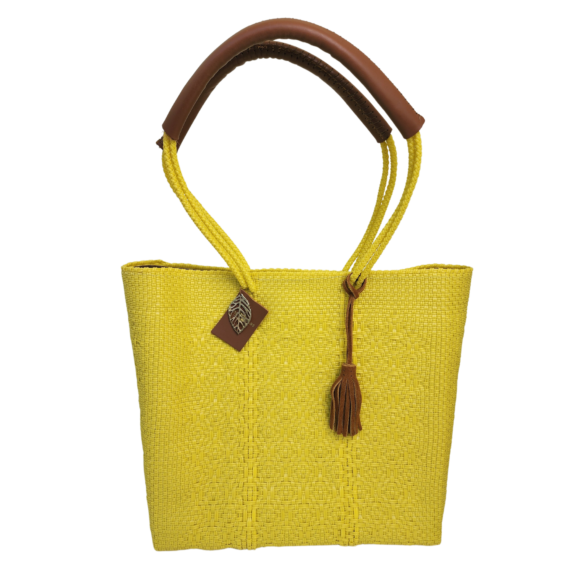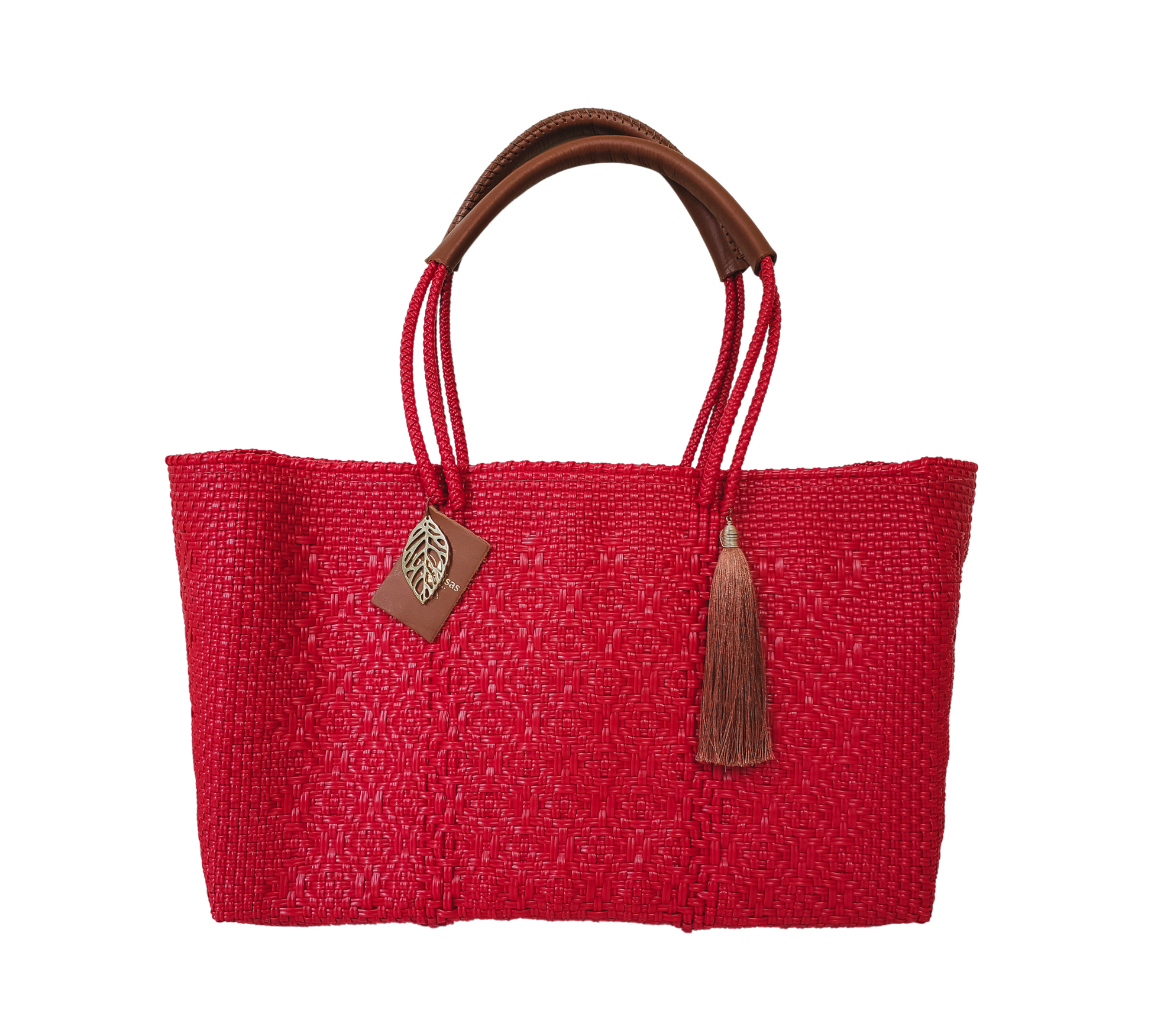Description : 100% Handmade sustainable bags made from plastic water bottles. This is a Handmade Bag made with recycled plastic materials, the handle is covered with 100% cowhide genuine leather, our bag also has a Polyester lining inside with a zippered pocket, 2 slip pockets, and a magnetic closure or zipper to make it more secure, elegant and functional. Decorated with free accessories like the tassel and a leaf-designed bag charm. It is designed to be carried on the shoulder or forearm. Easy to clean and sanitize