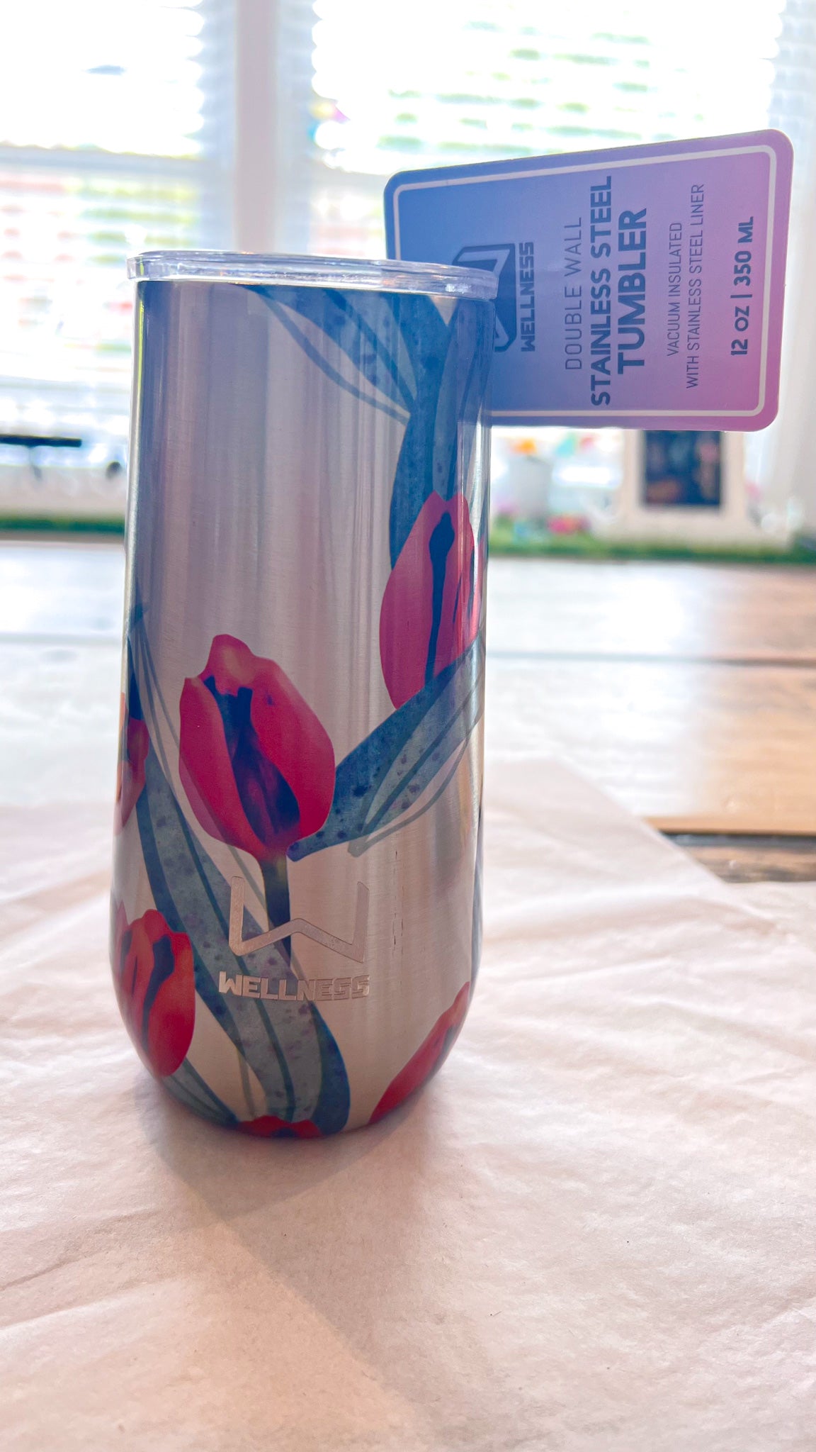 Description : Wellness Watercolor Flute Double Wall Stainless Steel Tumbler, 12oz.